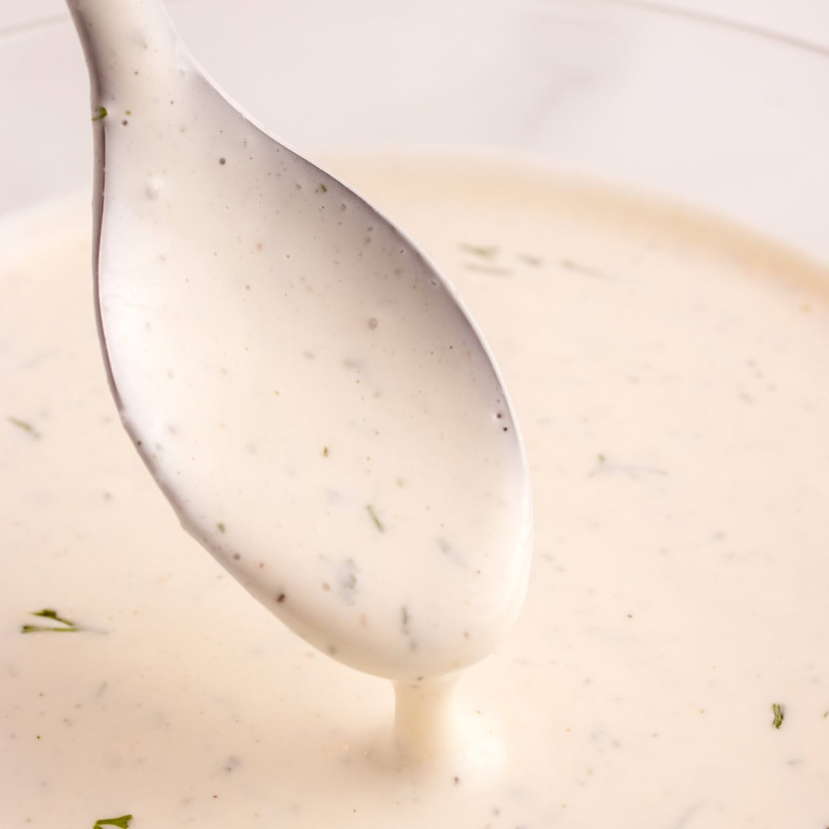 Buttermilk: Gives ranch its signature tang and pourable texture. No buttermilk? Make your own by adding 1 tablespoon white vinegar or lemon juice to 1 cup (room temperature) whole milk. Let it sit for 5 minutes before using.